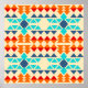 Native american seamless pattern of rhombus and triangle combinations in full colour, blue, light blue, orange, red orange, cream background.