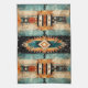 Striking Native American Southwest design kitchen dish towel in shades of tan, orange, blue and black. Matching apron and potholder/oven mitt set in our shop.