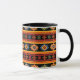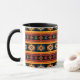 Native American, Aztec design mug features a vibrant starburst pattern set against a black background. Colours are dark green, blue, rust, orange and yellow. It's bright and colourful and will bring a big splash of colour and energy to your day!