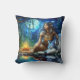 Native American Woman Sitting Beside A Wolf Throw Pillow