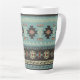 Native American / Tribal blanket inspired pattern features geometric designs. Palette: brown, orange, sky blue and cream white.