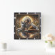 Native hearth warmth, willow boughs gentle peace. Timepiece shows tranquil moment. Witness the deep connection between a young, beautiful Native Indian woman and a majestic grey wolf, their stillness a symphony of nature's wisdom. Gentle willow leaves rustle in the soft breeze, while the comforting crackle of a campfire creates a warm sanctuary. A peaceful stream reflects the ethereal beauty of their shared moment, carrying the faint scent of wildflowers. Feel the tranquil magic of a moment beyond time, and craft your own vision with our Design Tool. Personalize the numerals and hands to create a unique haven, a sanctuary of peace in any space.