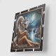 Take native journey, hidden path forest heart. This timepiece reveals the quiet rhythm of the wild. Follow the hidden trail to tranquillity with this enchanting timepiece, where the forest heartbeat art reveals every detail. Witness the profound connection between a young, beautiful Native Indian woman and a majestic grey wolf, their stillness a reflection of nature's quiet rhythm. Willow leaves rustle softly in the gentle breeze, while the warm glow of a campfire paints a comforting scene on their rocky perch. A serene pond reflects the ethereal beauty of their shared moment, carrying the subtle scent of woodland moss and wildflowers. Feel the tranquil magic of a timeless scene, and express your soul with our Design Tool. Personalize the numerals and hands to create a personal sanctuary, a haven of peace in any room.