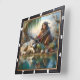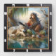 Gaze into a starry night of tranquillity with this mesmerizing timepiece, where the pines echoes calm reveals every detail. Witness the profound connection between a young, beautiful Native Indian woman and a majestic grey wolf, their presence a silent guardian of nature's harmony. Willow branches sway in the cool night breeze, while the warm glow of a campfire paints a comforting scene on their rocky perch. A tranquil pond reflects the ethereal beauty of their shared moment, carrying the subtle scent of pine needles and starlight. Feel the quiet magic of a timeless scene, and design your own story with our Design Tool. Personalize the numerals and hands to create a personal sanctuary, a haven of peace in any room.