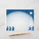 Simple blue and white silhouette Christmas nativity scene. Easily customize and add your own Christmas greeting or scripture verse in the space. Image available on various gifts and products.