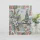 This detailed design features a richly layered, torn-paper patchwork border in vintage reds, greens, and creams, including checks, florals, and damask patterns. The soft, speckled center provides a beautiful canvas for the key elements.