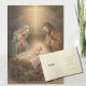 This soft watercolor Nativity design shows the Holy Family gathered around the Infant Jesus in a peaceful manger scene. With gentle colors and a traditional style, it is a timeless choice for Christmas greetings, holiday mailings, and faith inspired seasonal correspondence.