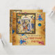 Elegant,classic, bright and merry Christmas design on parchment with antique Florentine floral motifs and a shiny 3D blue sapphire gemstone,for family reunions and holiday parties ,elaborated from Italian Medieval Miniature from Santa Maria degli Angeli 1370 tempera and gold on parchment