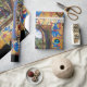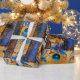 "Joy ,Peace,Love " Elegant,classic, bright and merry Christmas design on parchment with antique Florentine floral motifs and a shiny 3D blue sapphire gemstone elaborated from Italian medieval miniature in an antiphonary by Francesco Di Giorgio Martini