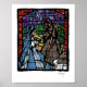 Nativity. The birth of Jesus drawn in a style reminiscent of a stained glass window. Mary and Joseph adore,their new born baby with the star of Bethlehem in the background.