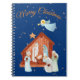 The Nativity & Stars notebook features a Christmas design, with a Nativity scene and an angel overhead, with the text, "Merry Christmas." The text can be customized as desired.