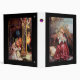 Colourful and magical atmosphere of the Christmas by German painter Matthias Grunewald ,Details from Second state of the Isenheim Altarpiece ,expressive and intense style of late medieval Central European art into the 16th century.Oil on wood.
