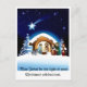 This postcard is of the holy family. Mother Mary is showing baby Jesus to a lamb while Joseph is looking on to the mother and baby. On the back it says: Wishing you the gifts of faith, hope and love at Christmas and always. This postcard is a true representation of what Christmas is about; the birth of Jesus.