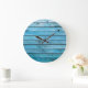 Natural blue wood, textured background. large clock