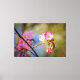 A tree twig with three pink sakura flowers and three buds. A smooth background of pink cherry blossoms, greenish foliage, and blue sky. A natural artistic composition. An extra-large digital painting from a photograph. Awesome floral stretched canvas print to decorate your place or to be used as a gift on weddings, birthdays, baby showers, or any other event. You can transfer this design to a variety of affordable products, including faux wrapped canvas print, poster, acrylic, metal, wood wall art, triptych, tapestry, a plaque with easel, photo block, puzzle, postcard, flat, and magnetic cards, magnet, wall clock, throw pillow, blankets, ceramic tile, keepsake box, trinket tray, trivet, coasters of any kind, playing cards. Just choose the product from the scrollable option "Transfer design to a product". This design is open for customization. Just use the "Personalize", or "Edit design" (as the case may be) button of the blue colour, or the link "Details" --> "Click to customize further". You will be transferred to the "Design Tool" page where you can easily use the "FILL/FIT" option to ADJUST THE DESIGN TO THE SIZE AND SHAPE of the product, rotate it, mirror, and change the type, colour of the font (if any), or to add your own text from the scratch. Just be creative, customize, buy one, have fun and be happy!