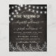 Natural Rustic Wood & Floral White Lights wedding Invitation, elegant and simple, elegant lights string, simple flowers white under and elegant calgraphy, to be completed with your details easily and quickly. Check my shop to see the entire suite for this design.