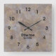 Personalize this modern neutral wall clock design with your own text. Acrylic wall clock is created in a printed pattern of natural greys, tans, blues simulating a stone slate pattern that can fit into any modern colour scheme. Available in your choice or round or square faces.