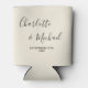 Natural White Script Minimalist Wedding Can Cooler
