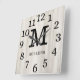 Natural Wood Large Numbers Family Name Monogram Square Wall Clock