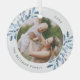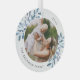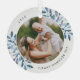 This holiday season, commemorate a special year with this elegant personalized photo Christmas ornament. Graceful sprigs of icy blue painted watercolor mistletoe frame your photo, with your name and the year curving around.
