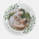 This holiday season, commemorate a special year with this elegant personalized photo Christmas ornament. Graceful sprigs of dark green painted watercolor mistletoe frame your photo, with your name and the year curving around.