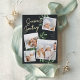 Our beautiful rustic chic holiday photo card features four of your favourite square family photos in a collage layout. "Season's Greetings" appears at the top in hand lettered gold foil script typography on a soft off-black background accented with lush dark green watercolor botanical foliage for a beautiful nature-inspired look. Customize with your family name and the year.