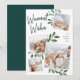 Our beautiful rustic chic holiday photo card features four of your favorite square family photos in a collage layout. "Warmest Wishes" appears at the top in hand lettered script typography on a white chalkboard background accented with lush dark green watercolor botanical foliage for a beautiful nature-inspired look. Customize with your family name and the year.