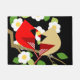 Geometric bird art of a male and female Northern cardinal on a flowering tree branch