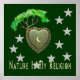 A tree grows from a heart with a crescent moon, and is surrounded by stars with the words: "Nature Is My Religion."