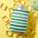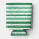 Nature Green White Horizontal Glitter Stripes Can Cooler