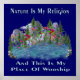 A mountain scene with lakes and trees and wildflowers with text that says: "Nature is my religion and this is my place of worship" lets others know that spirituality is earth-centred and Pagan too.