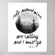 nature poster wall decor Muir quote The Mountains Are Calling with black and white mountain photograph and text. Photo art copyright Ann Powell