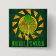 A sun symbol that is based on a spinning wheel holds a tree in the centre with the words "Nature Powered." In yellow, orange, and green to represent the sun and the earth and all growing things.