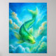 In the image, a vibrant green fish gracefully swims through a bright blue sky, defying the laws of nature. The fish’s scales shimmer in the sunlight, reflecting shades of emerald and lime. Its fins are spread wide, creating a sense of motion and elegance as it glides through the air. Fluffy white clouds drift in the background, enhancing the surreal atmosphere of the scene. The combination of the fish and the sky creates a whimsical and enchanting image, inviting viewers to imagine a world where anything is possible.