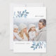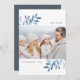 Envoyez des salutations de vacances à vos amis et votre famille dans le style chic avec nos cartes photos élégants. Des sprigs gracieux d'aquarelle bleu glacé encadrent votre photo, avec votre accueil personnalisé (avec "tout est brillant") en haut et votre nom de famille en bas.