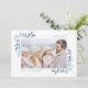 Envoyez des salutations de vacances à vos amis et votre famille dans le style chic avec nos cartes photos élégants. Des sprigs gracieux d'aquarelle bleu glacé encadrent votre photo, avec votre accueil personnalisé (montré avec "paix sur terre") en haut et votre nom de famille en bas.