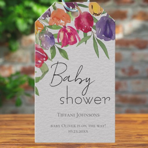 Make a lasting impression on your guests and announce your baby shower in style with this delightful Favour Bag. Order yours today and let the charm of blooming tulips and refreshing greenery bring an extra touch of magic to your special event! To personalize this design, please click the "Personalize" button. Matching items available.