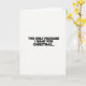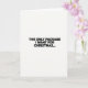 This card has simple black words on a clean, white background. The words say, "THE ONLY PACKAGE I WANT FOR CHRISTMAS..." 🎅🏼 The black letters stand out against the bright white, making them easy to read. The message is kind of funny and makes you think about presents. The three dots at the end make you wonder what comes next. It's a cool mix of holiday cheer and clever humor.