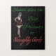 Our "Santa gives the best presents to Naughty Girls" design is perfect if you're looking for a Christmas-themed puzzle. The black background punctuates her candy-stripped stockings and Santa-inspired mini-dress. Have you been naughty or nice this year? Order yours today!