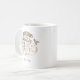decorative holiday coffee mug with faux gold foil script and decorative swirls on white. encircled information is in elegant font ready for your customization