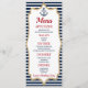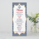 Il s'agit d'un menu de fête d'anniversaire. b jour garçon femme homme menu nourriture entrée boissons apéritif menu dessert table menu nautique marine bleu ancre mer rouge or parties scintillant brunch ahoy