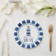 Watercolor navy blue lighthouse nautical themed baby shower paper plates. Customizable
