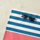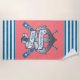 Nautical Anchor 1st Mate Name | Coral Blue Stripe Beach Towel