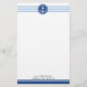 Stationery featuring a white anchor inside a blue emblem with white border. At the top are three light blue stripes and at the bottom a dark blue border. Customizable name.