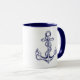 Maritime coastal decor themed white and navy blue anchor coffee mug
