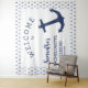 personalized nautical coastal theme bachelorette party tapestry in navy blue and white with an anchor is perfect as a bachelorette party photo backdrop. Celebrate your bridal shower in style with the perfect nautical beach party theme in bold pink, the perfect theme for the nostalgic vintage sailor bride and her bridesmaids.