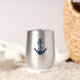 The nautical anchor Thermal Wine Tumbler design not only adds a timeless aesthetic but also complements any boating enthusiast's collection. Featuring your boat's name, and a navy blue anchor and rope, personalize to create a unique gear for your boat. Makes a great giveaway for everyone.
