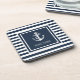 Nautical Anchor Boat Name Navy Blue Striped Coaster