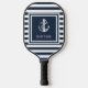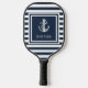Nautical Anchor Boat Name Navy Blue Striped Pickleball Paddle