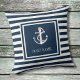 Nautical Anchor Boat Name Navy Blue Striped Throw Pillow